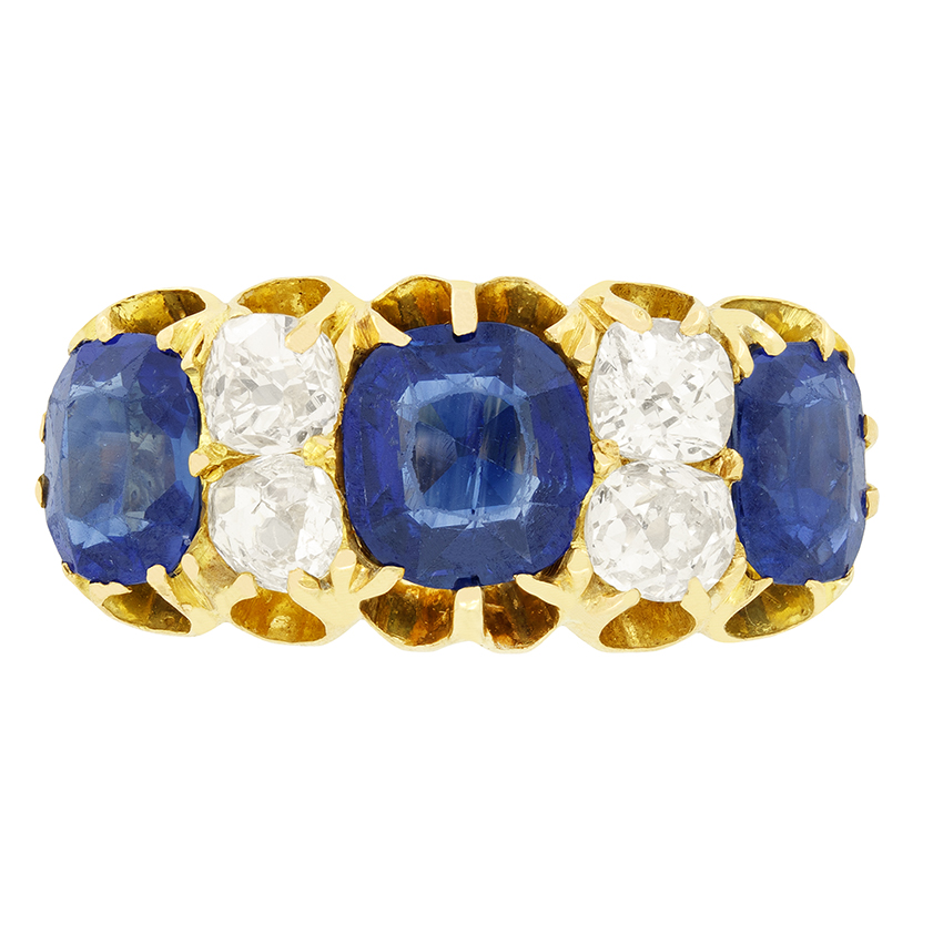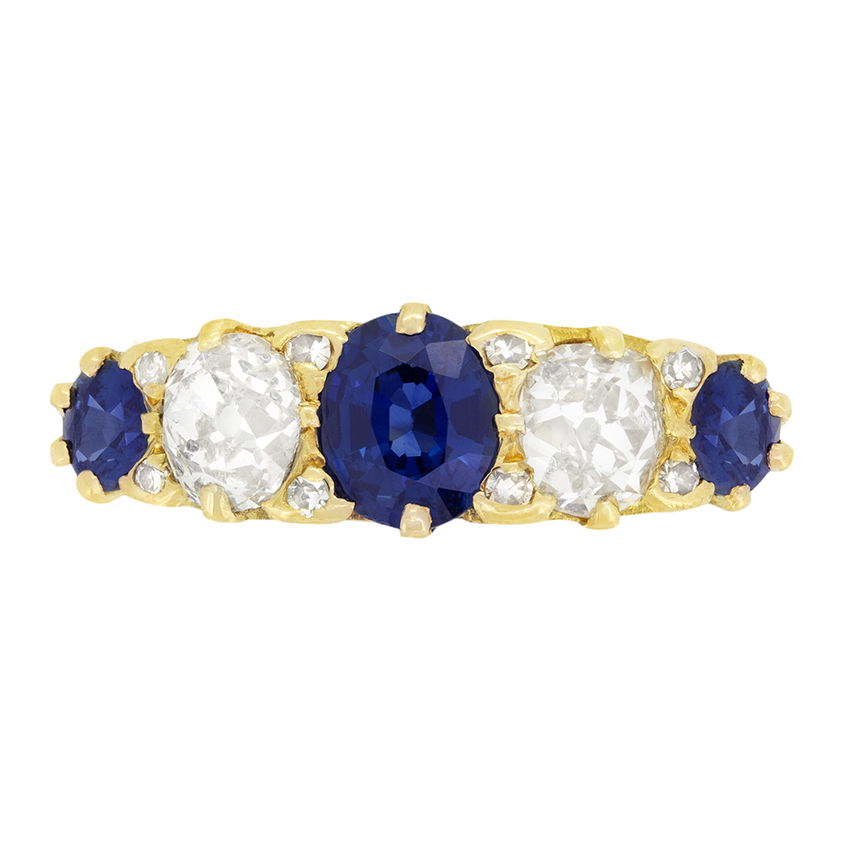 Victorian 1.80ct Sapphire and Diamond Five Stone Ring, c.1880s